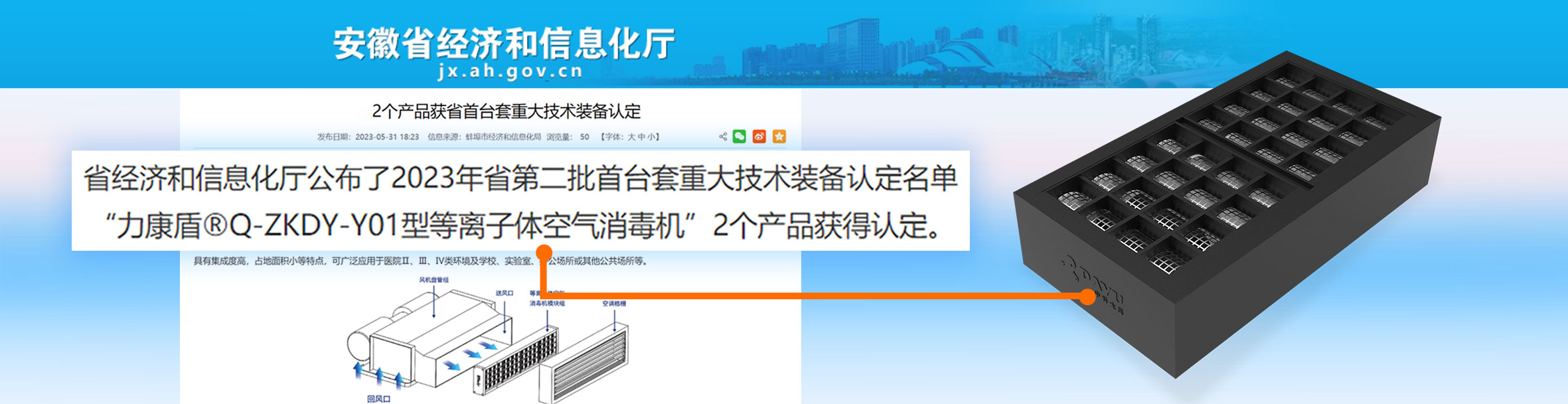 • 力康盾?ZKDY-G-180-P型等離子體空氣消毒機入選2024年度第三批安徽省首臺套重大技術裝備,評定等級:國內先進