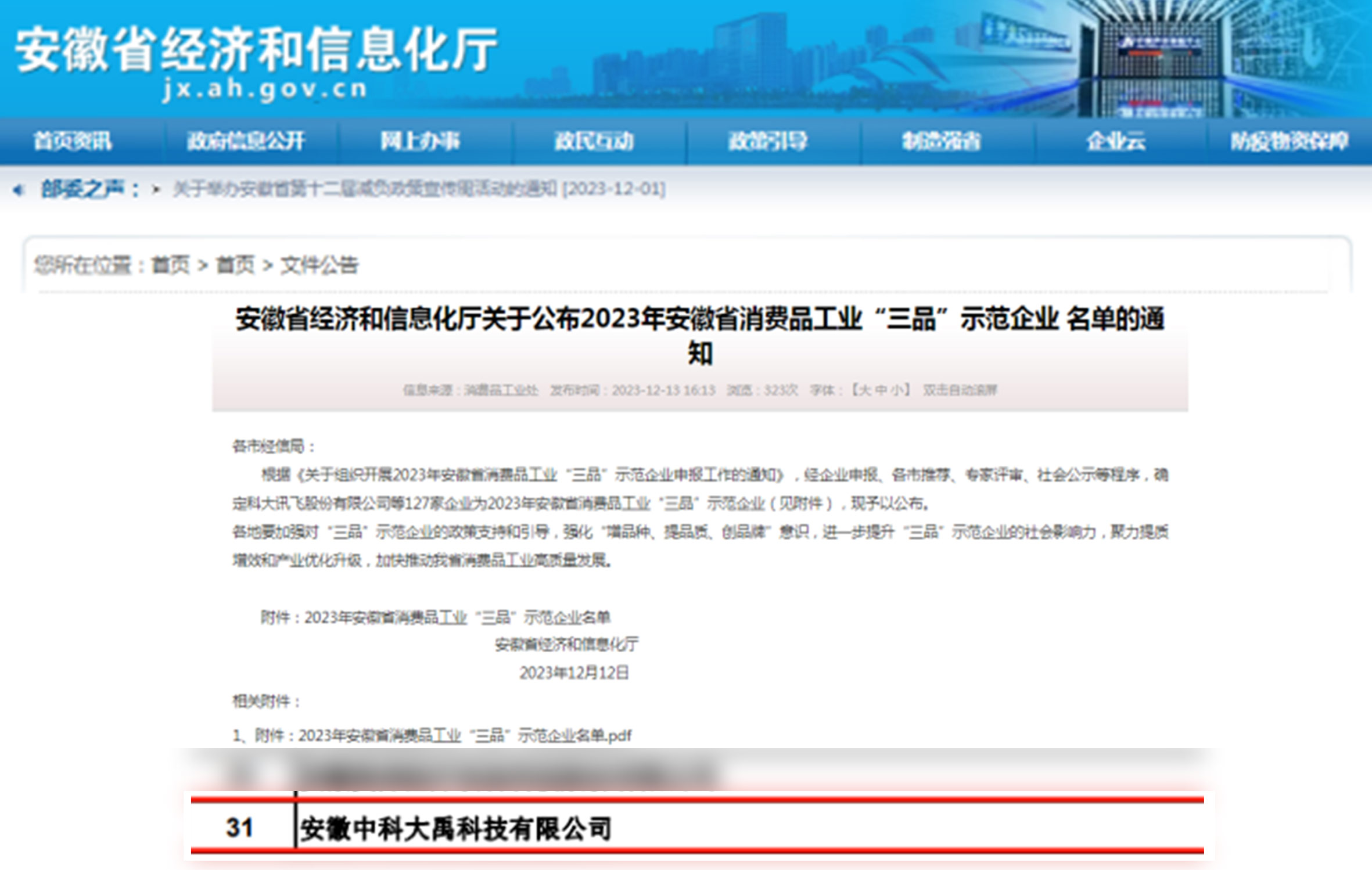 • 入選2023年安徽省消費品工業“三品”示范企業