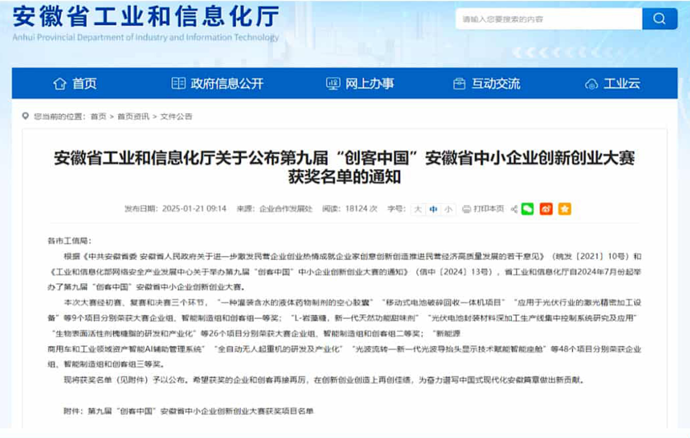 • 入選2022年度安徽省專精特新中小企業 入選2022年度安徽省創新型中小企業名單
